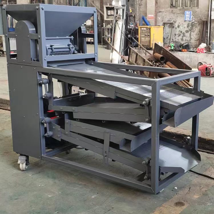 運行程序:啟動電機后直接把物料放進進料斗,烘干后的花椒在進料斗中打耙脫粒,然后落到篩面上進行篩選,一層篩選出來的梅花椒和大的花椒枝葉,二層是花椒籽落到出料口再次進行風選,三層進行復(fù)試篩選,四層是成品花椒殼,每層的底篩篩選出來的是小的花椒枝葉,就完成了整個運行程序。